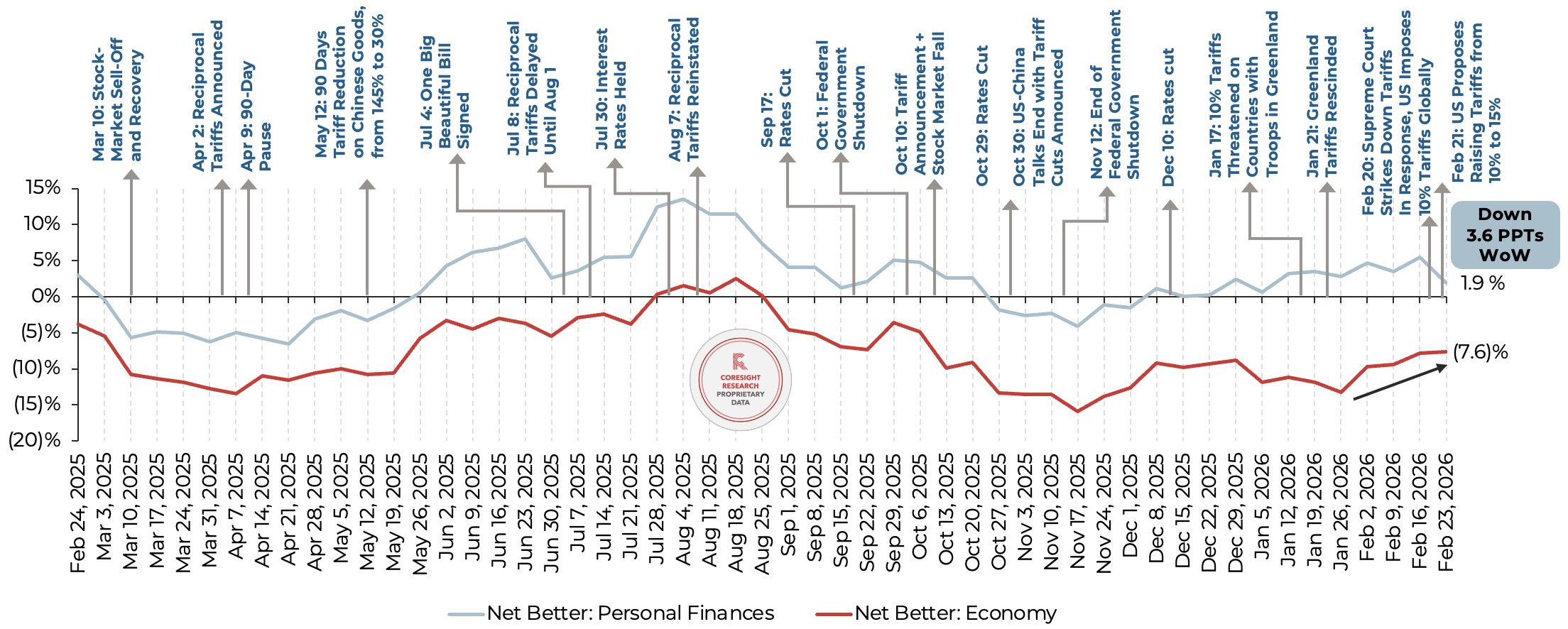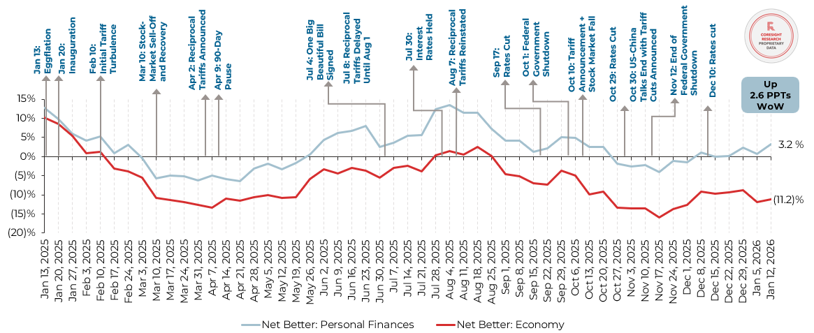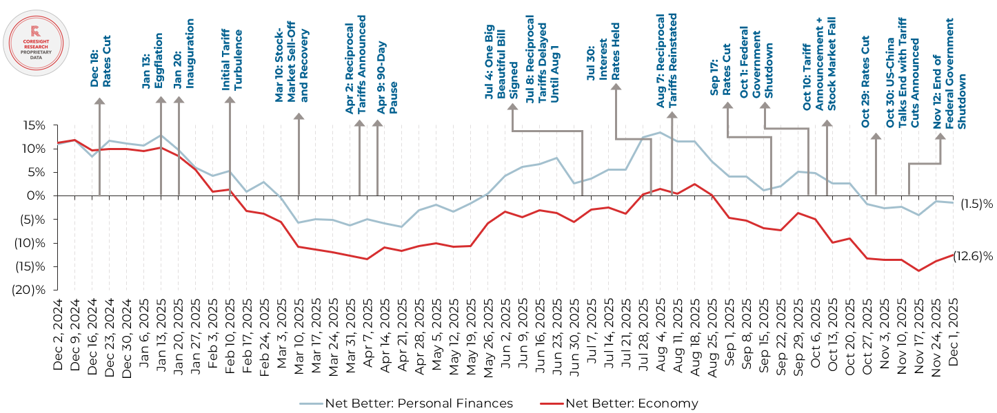 All Respondents: Whether They Expect Their Household Financial Situation/the Economy To Get Better or Worse Over the Next 12 Months—Net Better (% of Respondents, Four-Week Rolling Average)